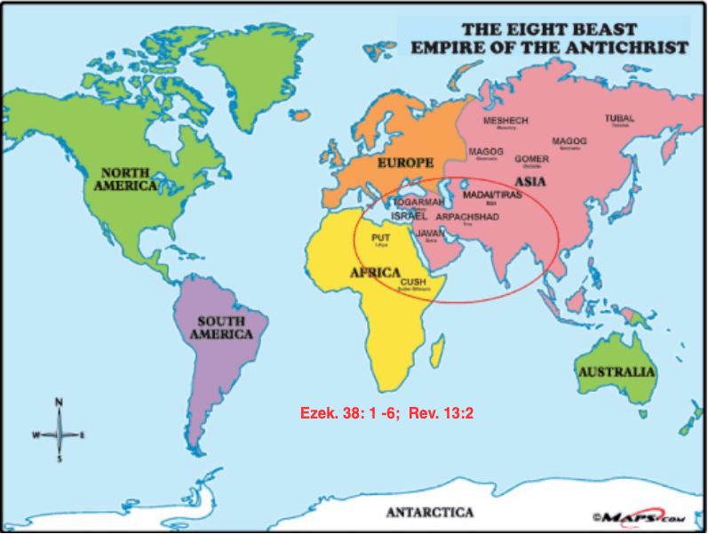The Eighth And Final Beast Empire is the apex of false human government instituted by Nimrod at Babel. Its power base is Japhethic through Magog. Though the antiChrist is of mixed ancestry, Semito-Japhethic, his power base is Japhethic through Magog, Meshech, and Tuval, mainly Magog. There is no record anywhere in Biblical Prophecy of a powerful coalition between Russia, China, India, Pakistan, Iran, and South Africa etc that shall arise to rule the world in the latter days. There may be attempts but they will not work well enough to subvert and usurp power from the West.