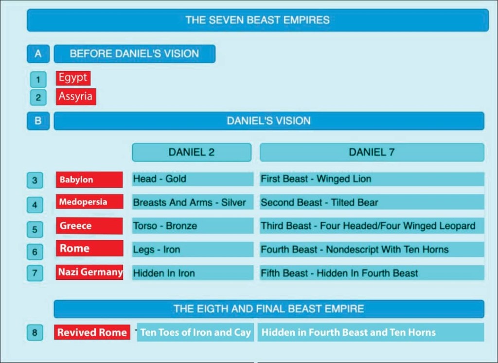 Those who say that the antiChrist will emerge from the Islamic world, they call him the Mideast Beast or the Islamic antiChrist, from Turkey(Joel Richardson, Walid Shoebet, and David Rosenthal) to be precise are also wrong because even though there is no temporal continuity and succession as in the five previous empires, there is ancestral continuity and succession between the sixth, seventh, and the eighth beast empires(Dan.2:33-35). The last three beast empires have magogite ancestry. This is symbolized by the iron in the two legs and the ten toes. The two legs are the two divisions of the Roman Empire, the Eastern and the Western Roman Empire, Rome and Byzantium. The ten toes are the ten nations and ten kings of the ten nation confederation of the Eighth And Final Beast Empire of Satan, the Fourth Reich. The iron is the Roman ancestry. Rome was founded by the nomadic Japhethic tribes of Magog, Meshech, and Tuval, mainly Magog. They were responsible for pushing out of the frontiers of history. The Third Reich, Nazi Germany was hidden in the iron. Had the Jews accepted Jesus as their Messiah, the Roman Empire would have advanced and transitioned into its final stage, the ten toes and ten horns. But instead, Israel went into exile which has lasted till today. In this exilic period, The Diaspora, The Third Reich of Adolf Hitler arose and perpetrated the Holocaust, the worst persecution the Sons Of Jacob have experienced so far in the course of their history.
